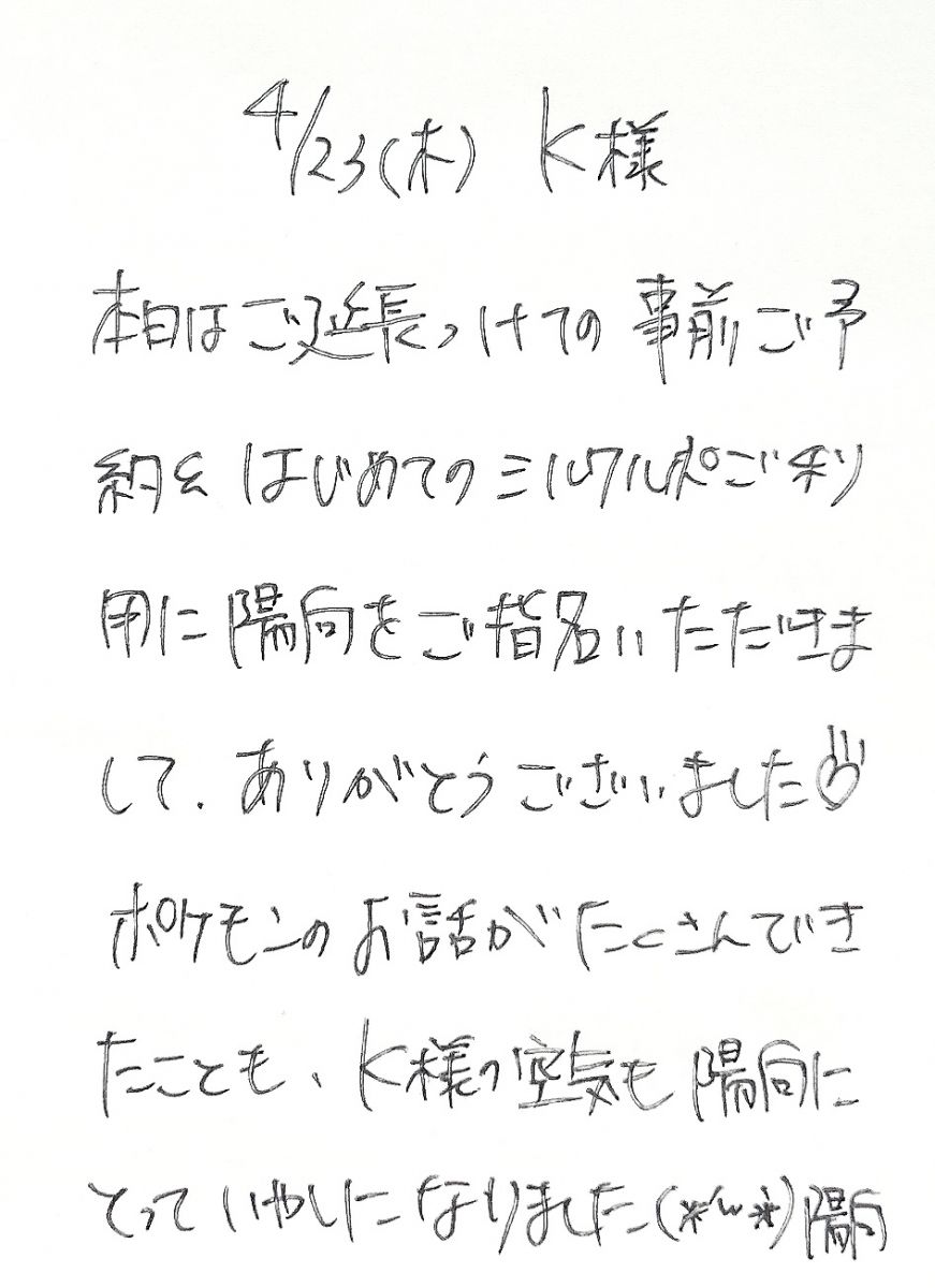 お礼のお手紙💌【次回24日(金)12:00-17:00ご案内可能】