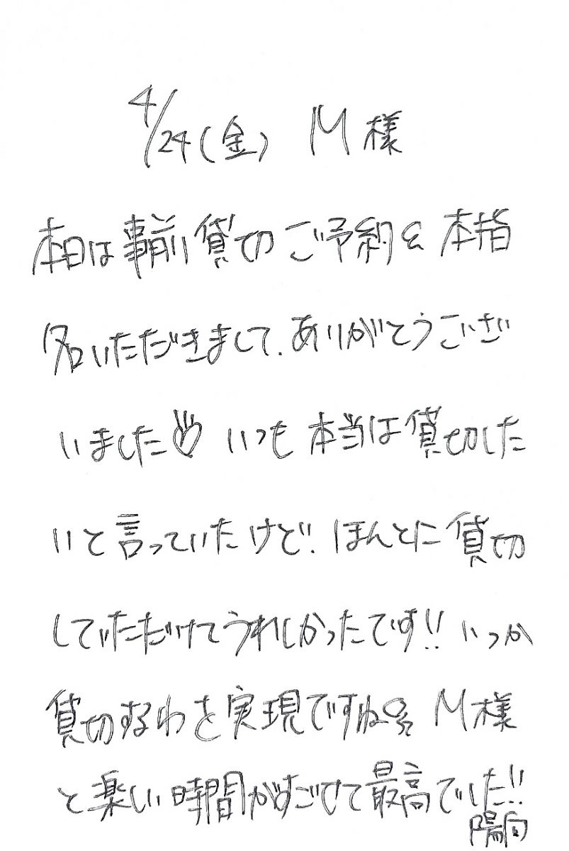 お礼のお手紙💌【次回 27日(月)12:00-17:00ご案内可能】