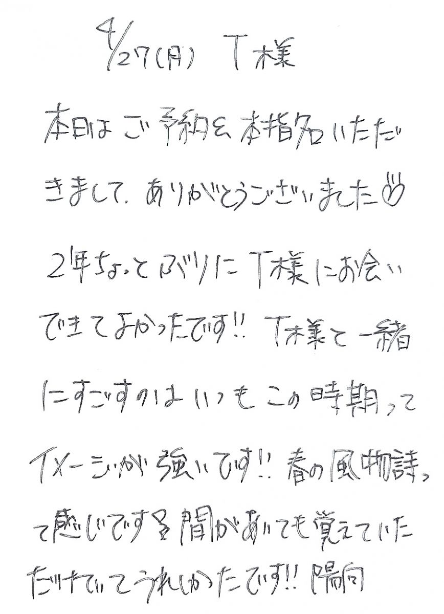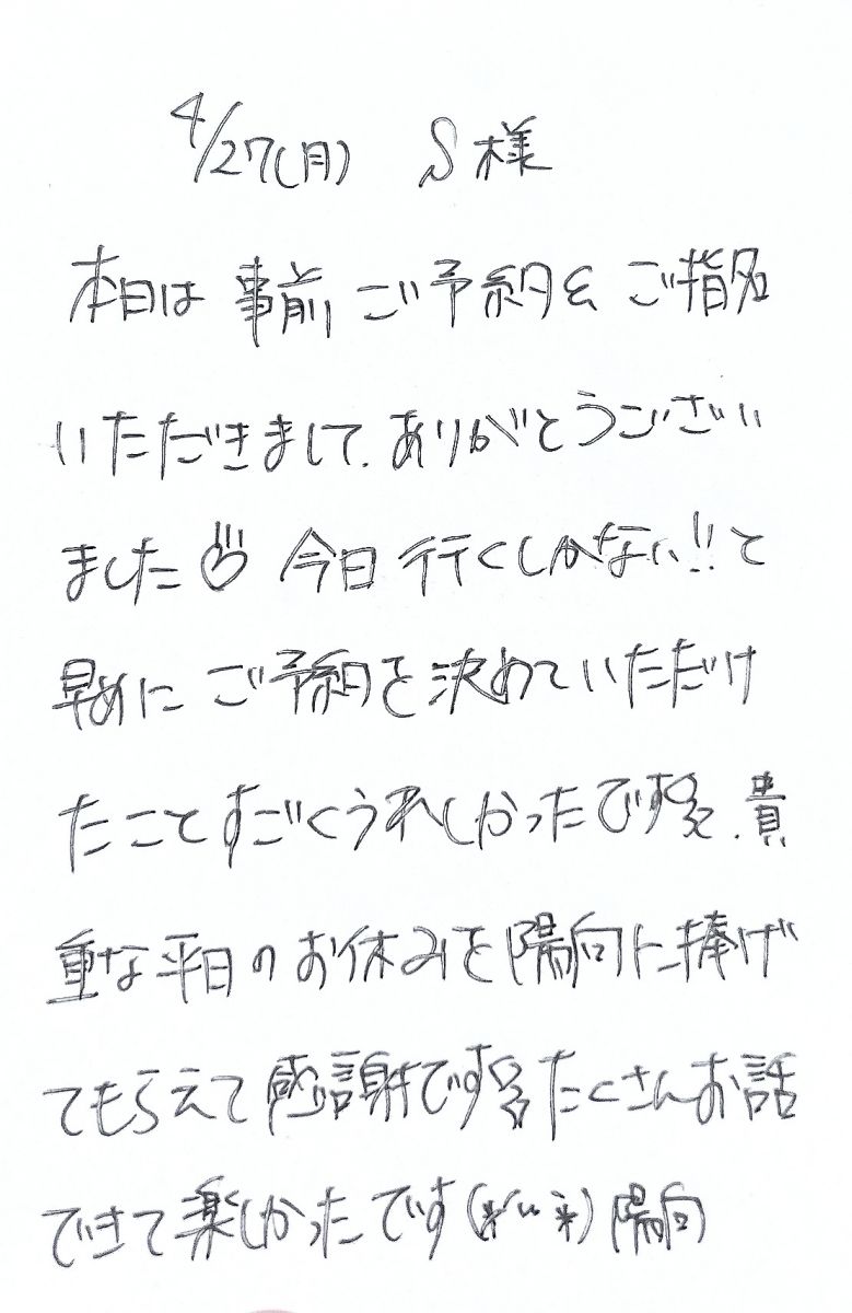 お礼のお手紙💌【次回 28日(火) 15:15-17:00ご案内可能】