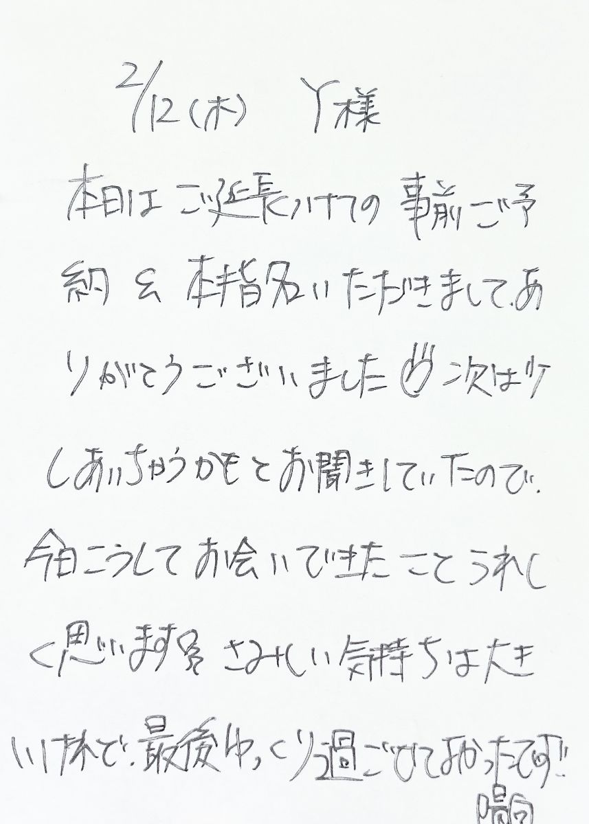 お礼のお手紙💌【次回16日(月) 12:00-13:15/15:15-17ご案内可能】