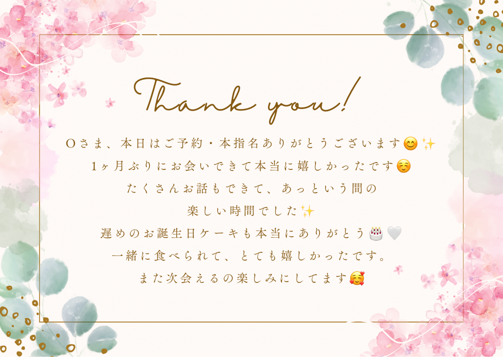 今日も素敵なお時間を一緒に過ごせて、とても嬉しかったです☺️💐